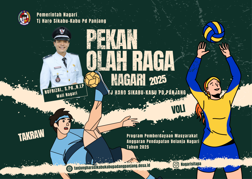 Pemerintah Nagari Tj. Haro Sikabu-Kabu Pd Panjang kembali menggelar Pekan Olahraga Nagari (PON) yang menurut rencana akan dimulai pada 13 Desember 2025. Kegiatan yang telah dimulai setidaknya dua tahun lalu ini menampilkan dua cabang olahraga, yakni Sepak Takraw dan Bola Voli, yang dipusatkan di dua jorong berbeda. Cabang Sepak Takraw dilaksanakan di Lapangan Takraw Jorong…